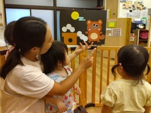 まずは、みんなの大好きな絵本で、お月見について知ってもらいます。