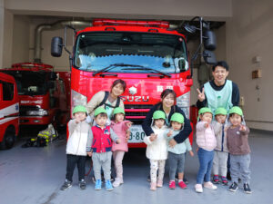 消防や警察の方を招いて、AED講習や不審者講習、消化訓練や火災、地震、水難時の避難訓練では、職員も園児も落ち着いて行動できるよう努めいています。