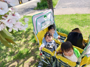 0歳は外の風を感じるだけでも気分転換になり、1・2歳児は次第に長距離へと歩みを進め、安全にお散歩をするためのルールや季節の移り変わりを肌で感じています🍂