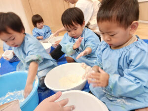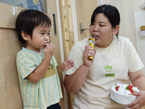午後おやつも自園で調理したものを提供しています。みんなが大好きなパンケーキやドーナッツに加えて、どら焼き、大学芋など日本らしいメニューもたくさん並びます🥄