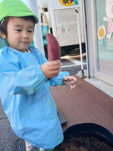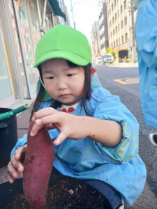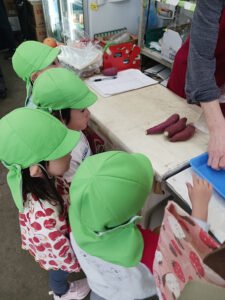 違う日には、保育園の近くの八百屋さんに行き、さつまいも🍠を買いに行きました。