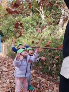 大きな葉っぱやきれいな絨毯で沢山遊んでいます🍂🍃