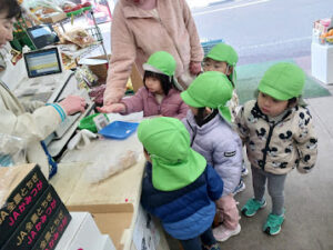ぶどう組(2歳クラス)は、八百屋さんでお野菜を購入して👛
