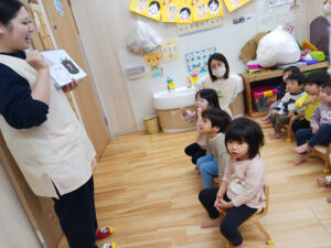 「食いしん坊のおばけの子」を先生がしてくれました!📚