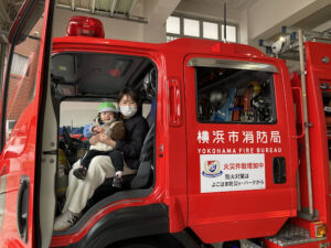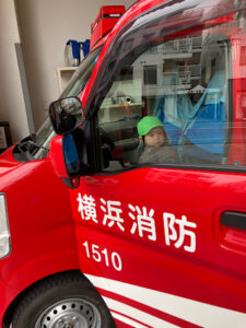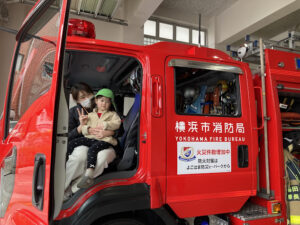 大きなおおきな消防車に乗せてもらい