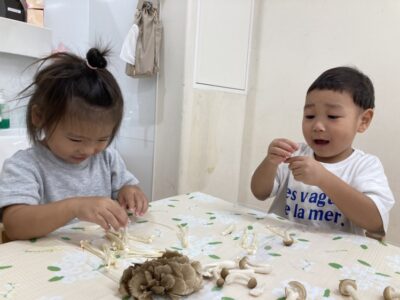 ぶどう組(2歳児)さん🍇の食育で利用したのはしめじ🍄