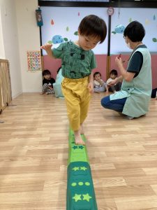 バランス感覚や、体幹を鍛えながら、雨にも負けず楽しく遊んでいるぴーまんのみんなでした☺