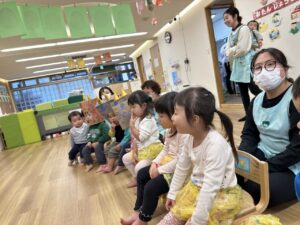 初めは節分集会を行い、節分とはどんな行事なのか絵本やパネルシアターを使って紹介します✨